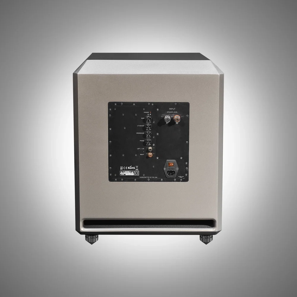 ARIS subwoofers are available in 10", 12", and 15" sizes and feature slotted port quasi-transmission line loading. With the "Analog Room Integration System™," these subwoofers integrate perfectly into any room and with any loudspeaker design, retaining the hallmark power, speed, and detail Von Schweikert speakers are known for. A light and stiff carbon fiber driver featuring a vented voice coil and massive motor is perfectly tuned to deliver response down to 12hz. Powering the system is our proprietary Foundation amplifier technology, outputting 1000 watts. The amplifier circuit features an isolation transformer, which allows us to take the signal directly from the system's main amplifier for the purest signal tracking, lowest distortion, and zero signal delay. Phase is adjustable in either standard or inverted polarity from O-360 degrees depending on the application, for example, bass reinforcement or irregular room bass modes in the room.
